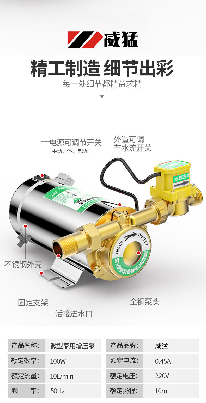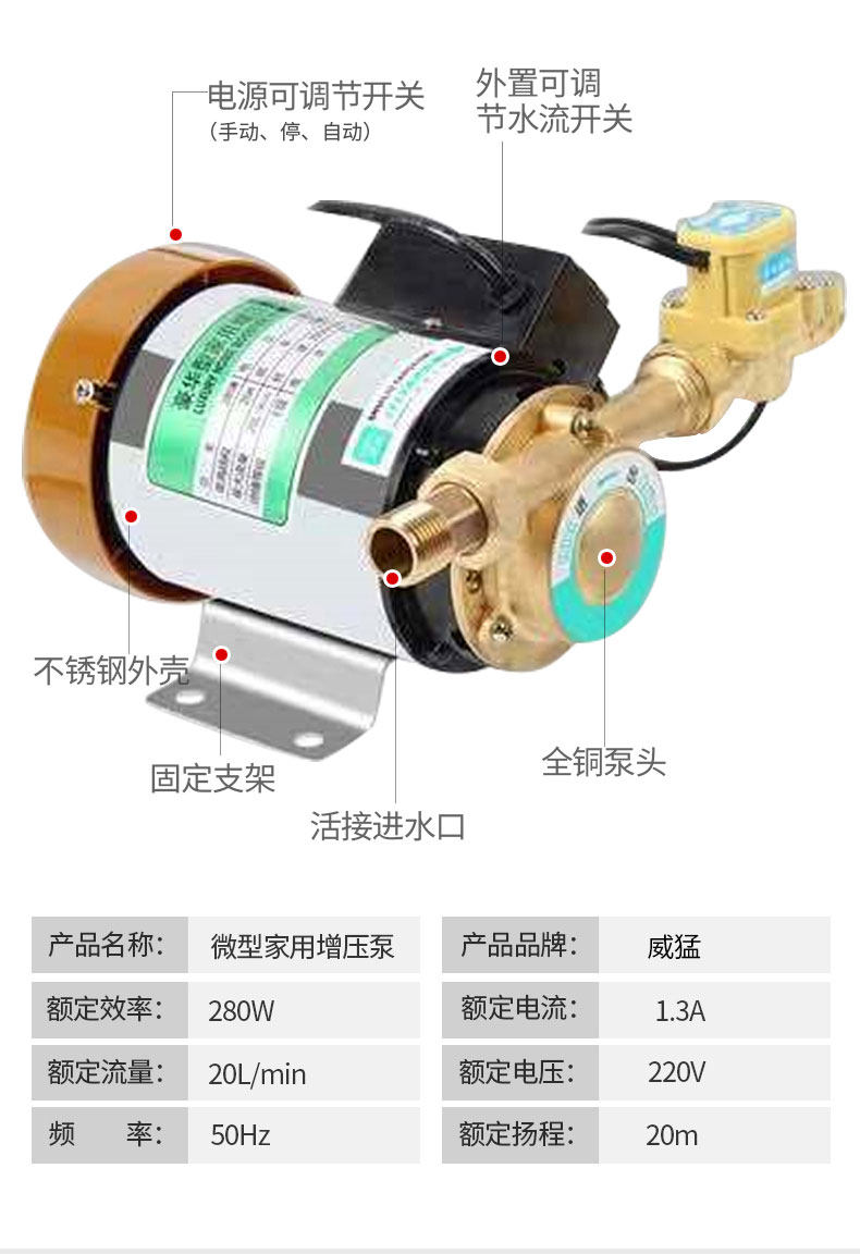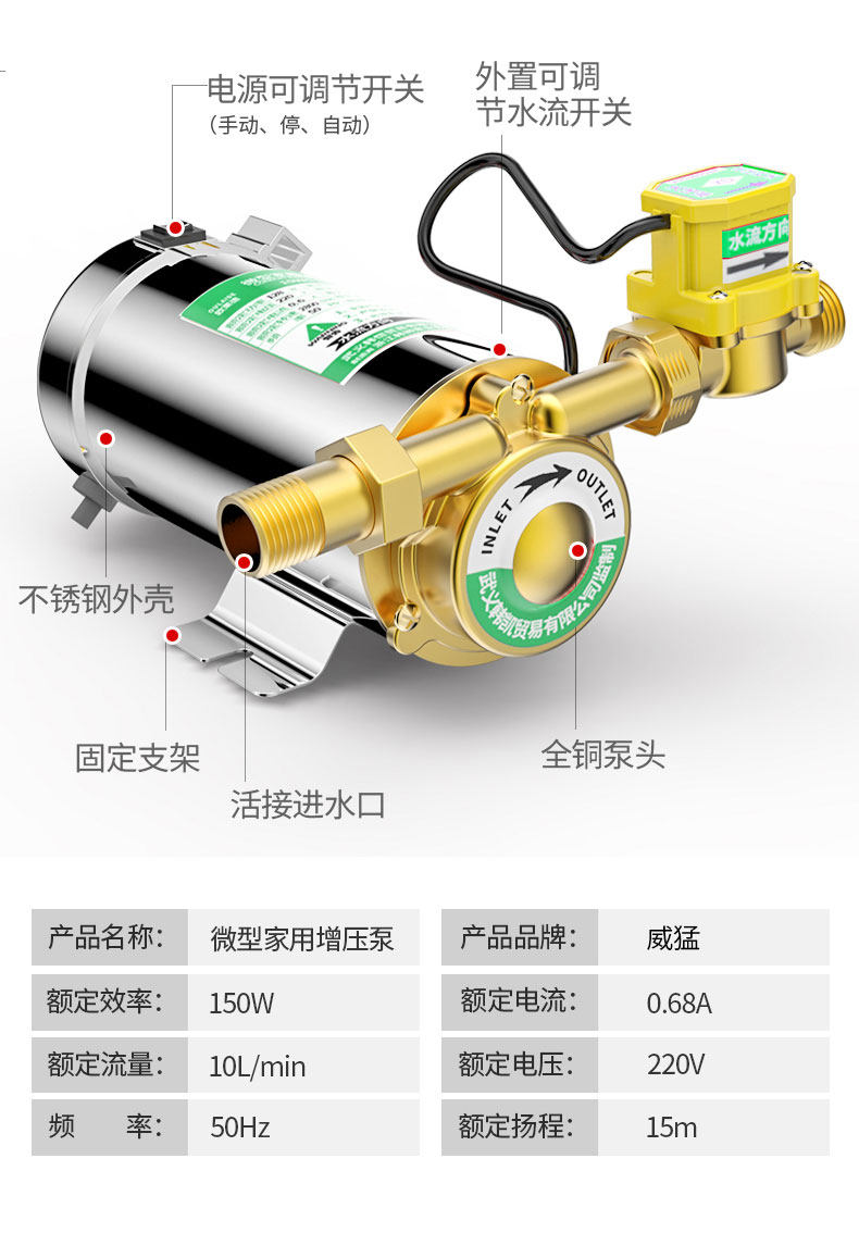 威猛 Полный -Автоматическая водопроводная вода Увеличьте насос домашний солнечный водонагреватель.
