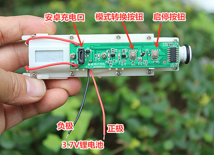 Движение водяного насоса высокого напряжения в устройстве для промывки зубов с контрольной платой может использоваться с помощью литиевых батарей 3,7 В. Существуют зарядные гнезда Android.