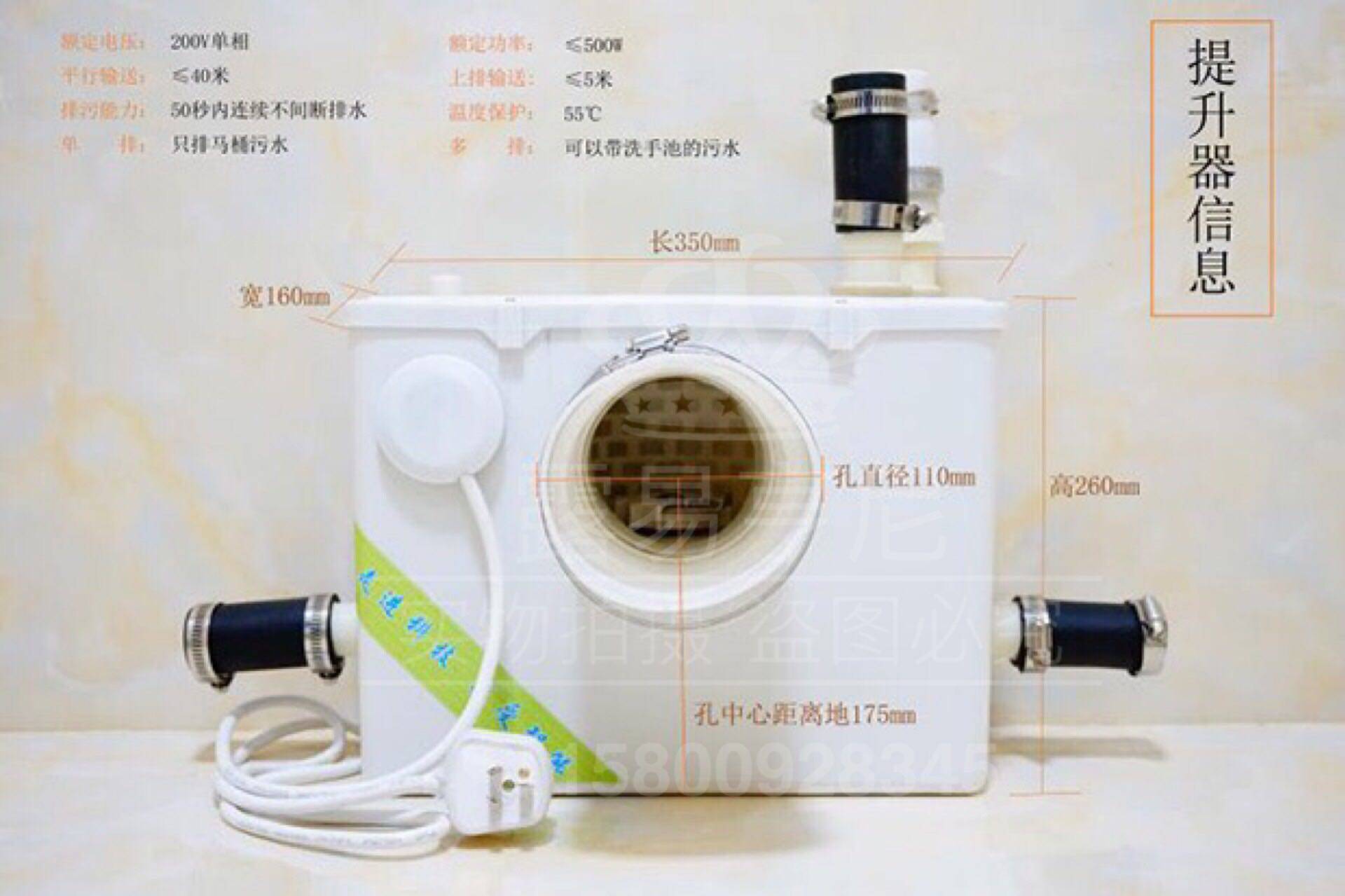 Подвальный электрический энхис -вывод на стене Стены Электрический раздавляющий туалетный туалетный насос канализационный насос Электрический септический навоз
