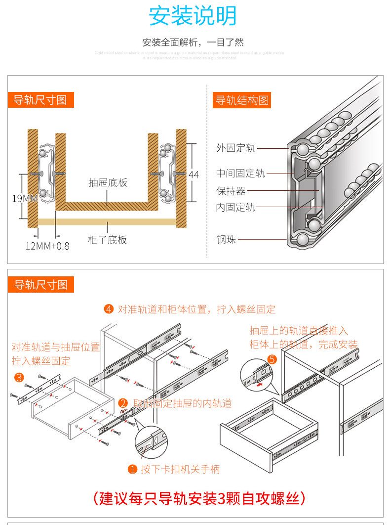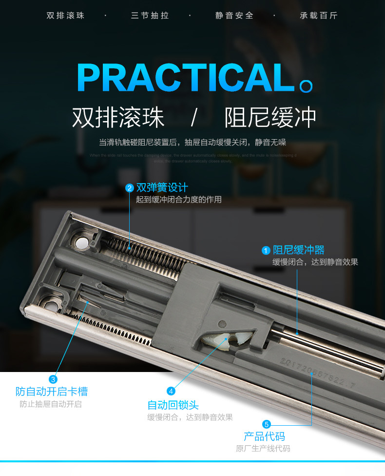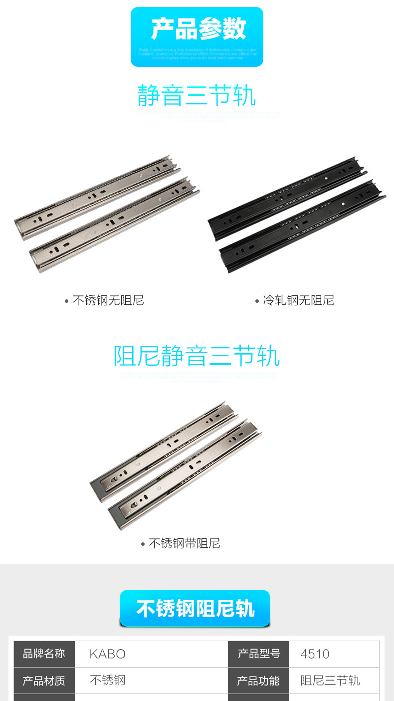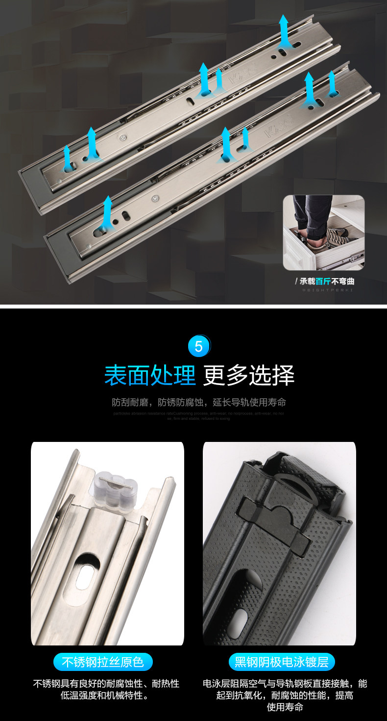 Немецкие направляющие для выдвижных ящиков KABO, демпфирующие трехсекционные направляющие из нержавеющей стали, шариковые направляющие с бесшумным буфером, направляющие для выдвижных ящиков