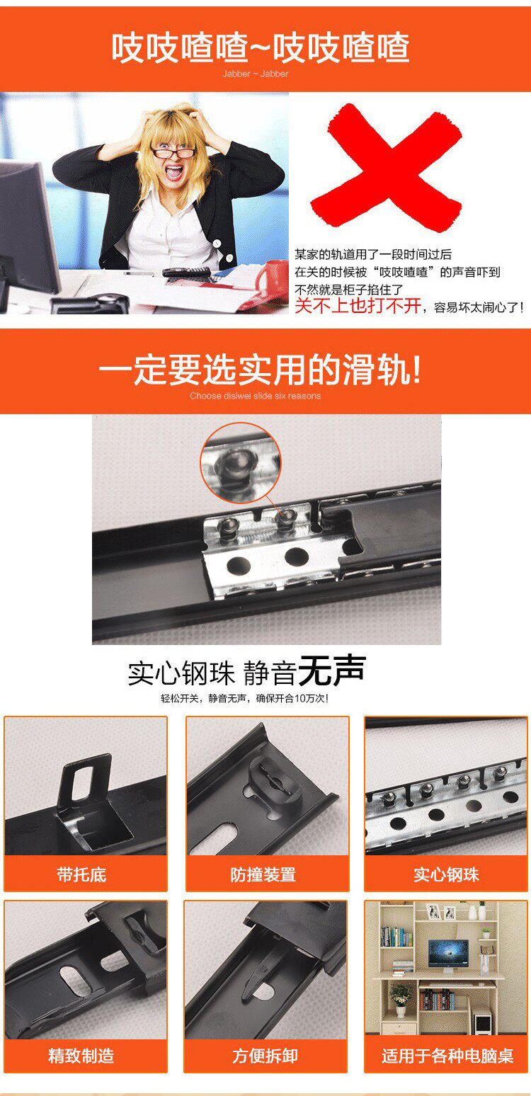 Двухсекционный выдвижной ящик шириной 27 мм, бесшумная направляющая для выдвижного ящика, компьютерный стол, клавиатура, желоб, направляющая шкива ящика