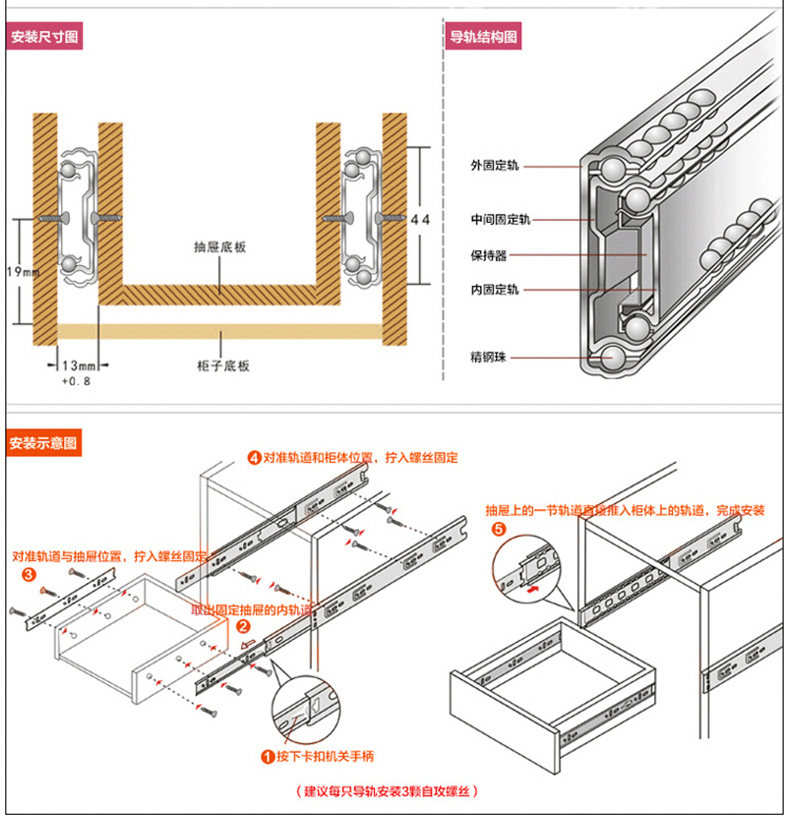 Магазин возвращается, чтобы пропустить шкаф для ящика из нержавеющей стали, черный 3, три секции тихого демпфирующего буфера