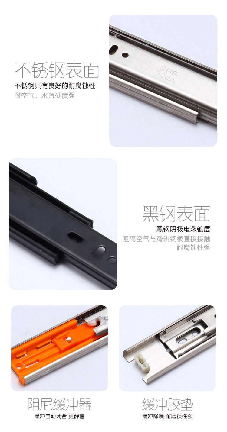 Толстая ящика из нержавеющей стали. Следы за молчаливым тройным загрязняющим буфером 45 Слайд -рельсы длиннее 20/55/60 см.