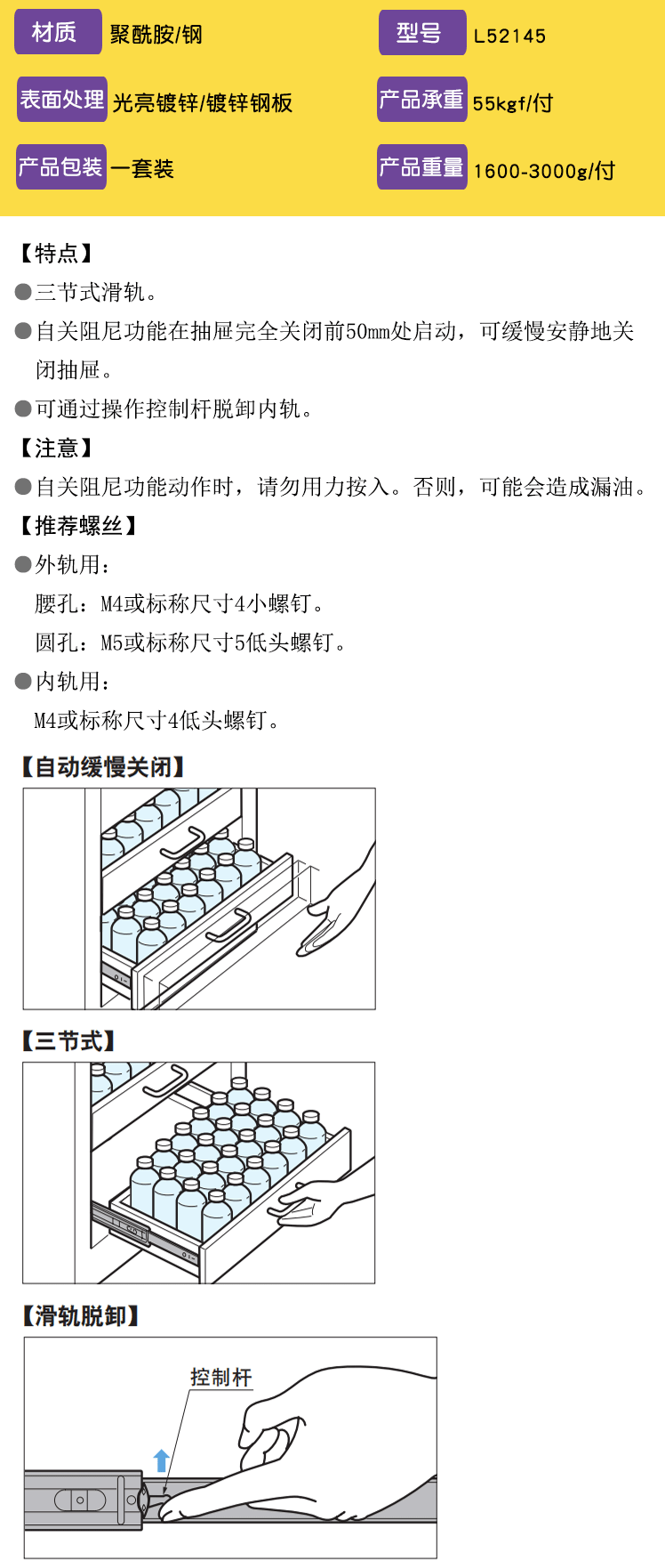 Японская лампа медленно и тихо закройте трехсекционную стальную скользящую рельс -ремни самостоятельный демпфирование