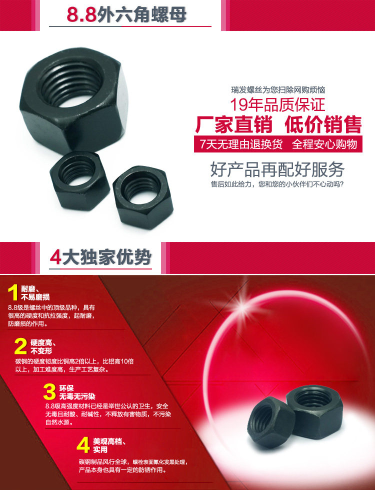Продажа по продвижению!Национальный стандарт 8,8 уровня высокопрочных волос черный шестиугольный орех M3-M36/Nide Level 8