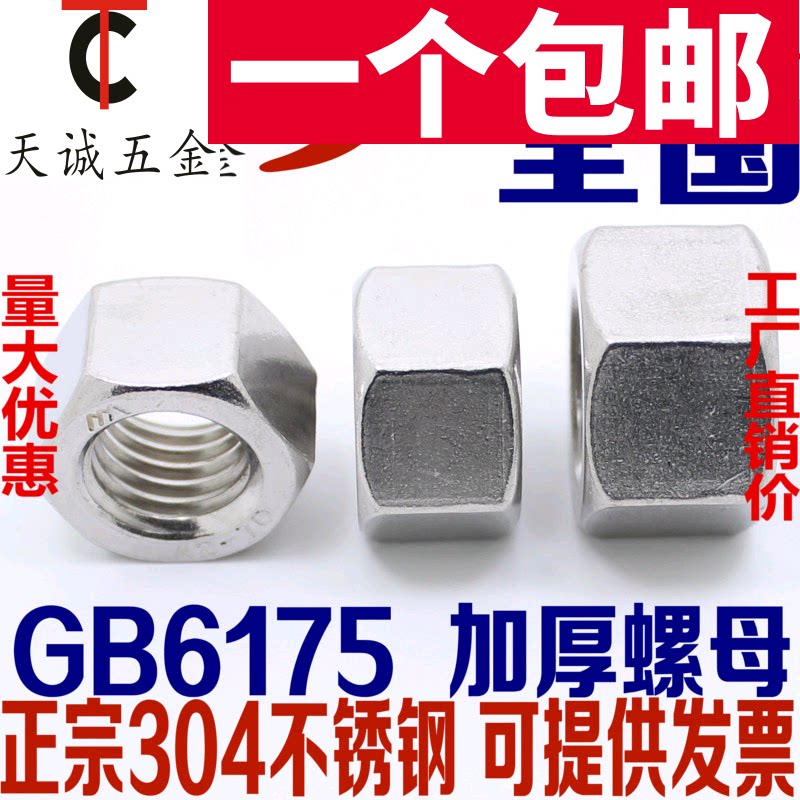 GB6175 304 Гексагональная сгущенная гайка из нержавеющей стали, супер густая гайка, удлиненный и высокий винт M6M8M10M12 мм