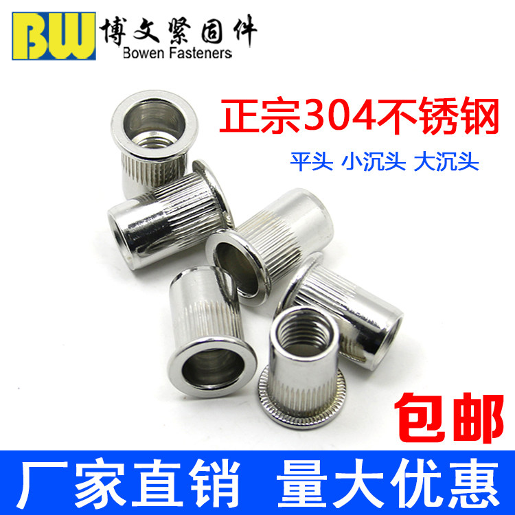 Заклепка из нержавеющей стали 304 Плоские шлепающие гайки, упрямые полосатые, потянуть мать M3M4M5M6M8M10M12