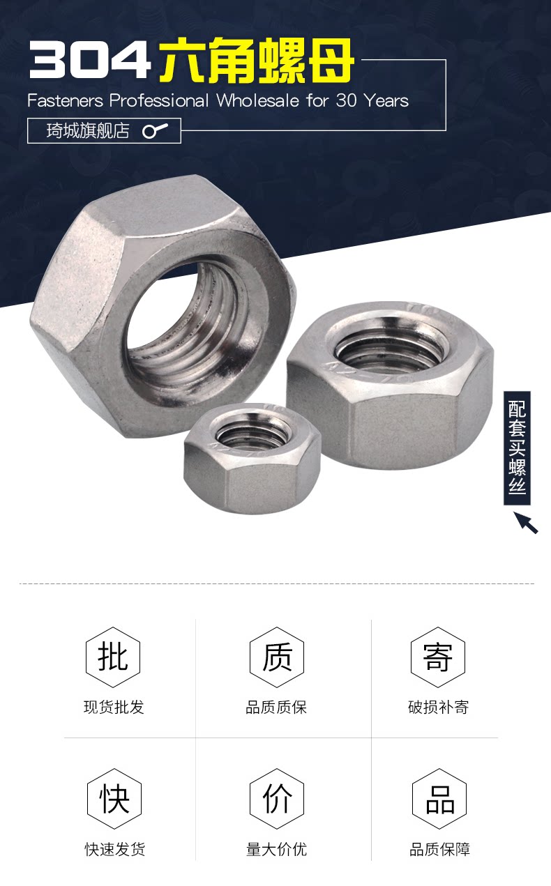 304 Хексагональные гайки из нержавеющей стали из нержавеющей стали M8M10M12M14M16M20*1/1,25/1,5
