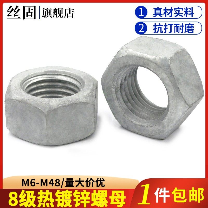 Горячие оцинкованные гайки 8 GB6170 Hot -ZINC -SOAKEAD -PORE -EXPODEDED M8M10M16M20M22M24M30M48