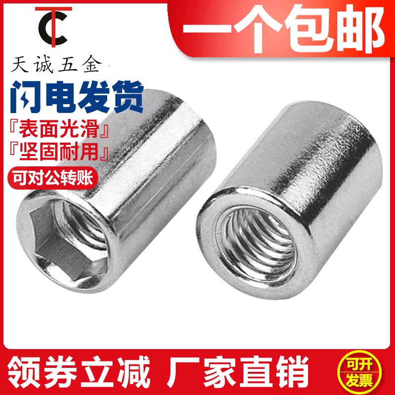 304 гайка стержня из нержавеющей стали, круглый шестиугольный цилиндрический гайка, пневматическая гайка M5M6M8-M12
