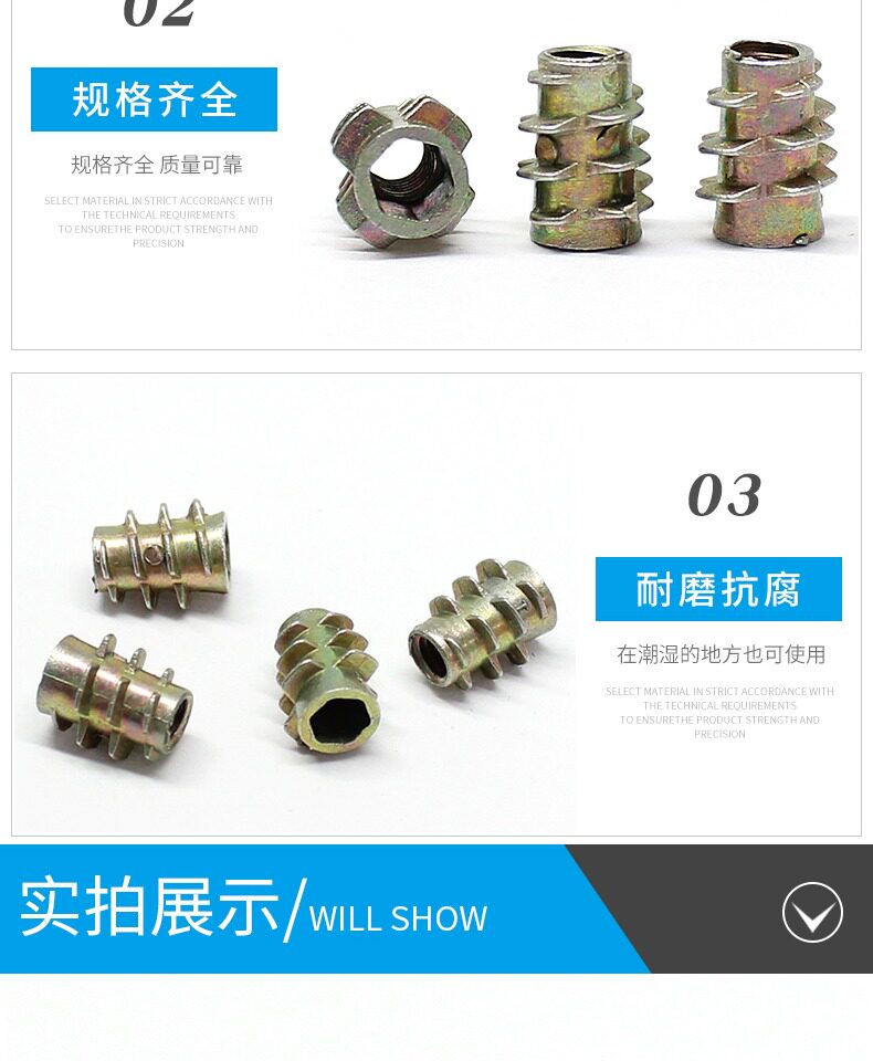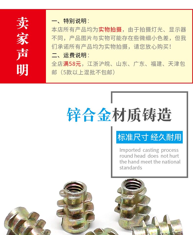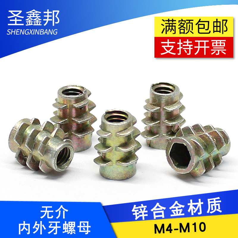 Мебельная гайка из цинкового сплава, гайка с непрерывной внутренней и внешней резьбой, закладные детали, инкрустированная соответствующая гайка, соединительная гайка M4-M10