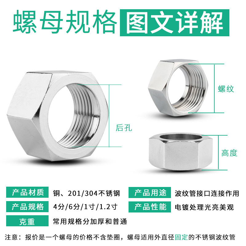 304 Труба из нержавеющей стали. Труба с волной 4 минуты, 6 минут, 1 -дюймовая специальная винтовая медная гайка водонагреватель Водообожающий гайку