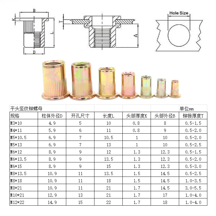 Потяните заклепки с гайкой/шляпа/шляпа/заклепка ручная головка рука