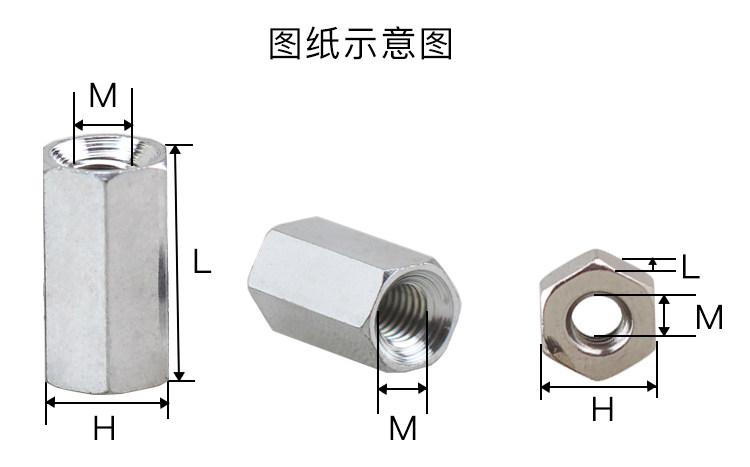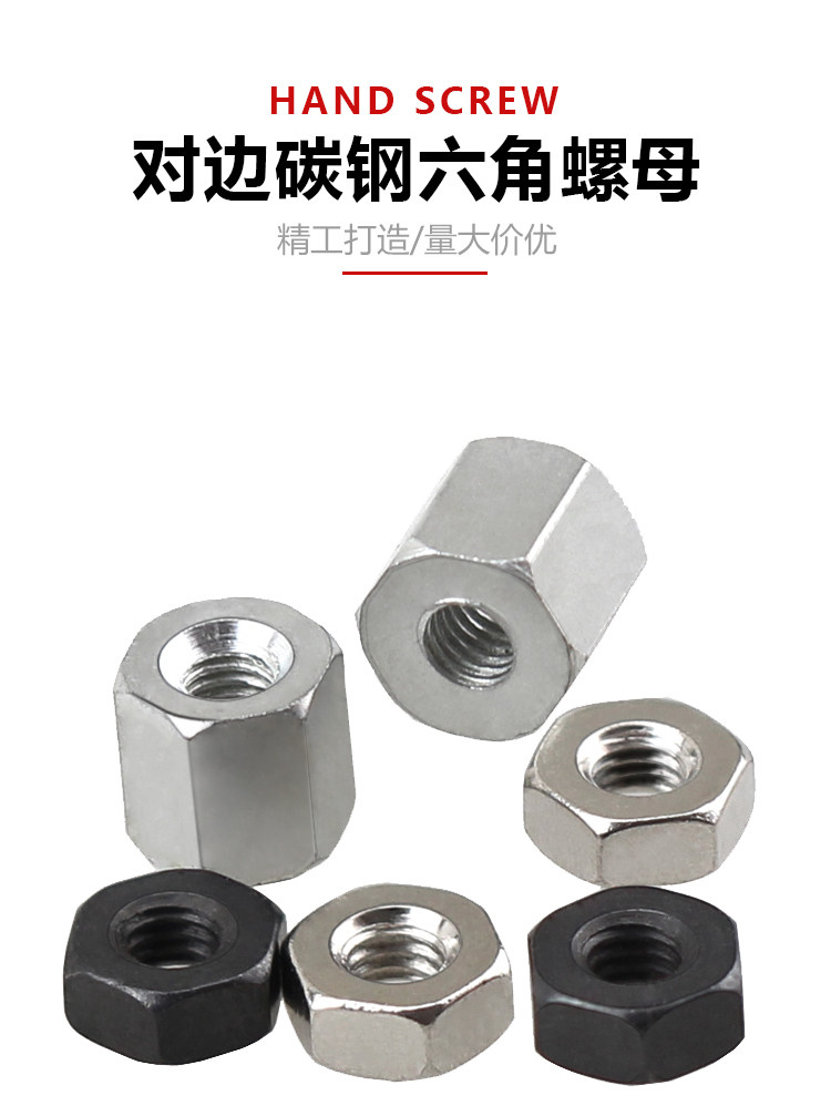 Шестиугольные гайки увеличивают боковую удлиненную утолщенную шестиугольную утолщающую машину Зубной винт Мать М4 Черный/Белый
