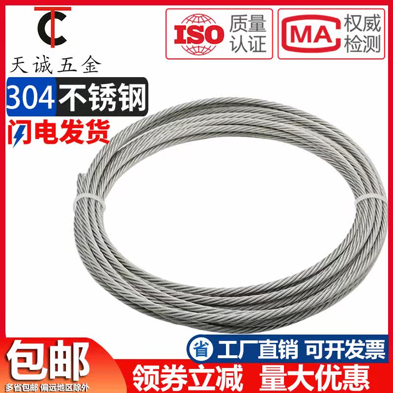 304 Стальная кабельная веревка тонкая сушка для пластификации ржавчин -стальной проволоки 5 веревка 1 сталь 1,2 1,5 нг. 2. 3 4 6 10