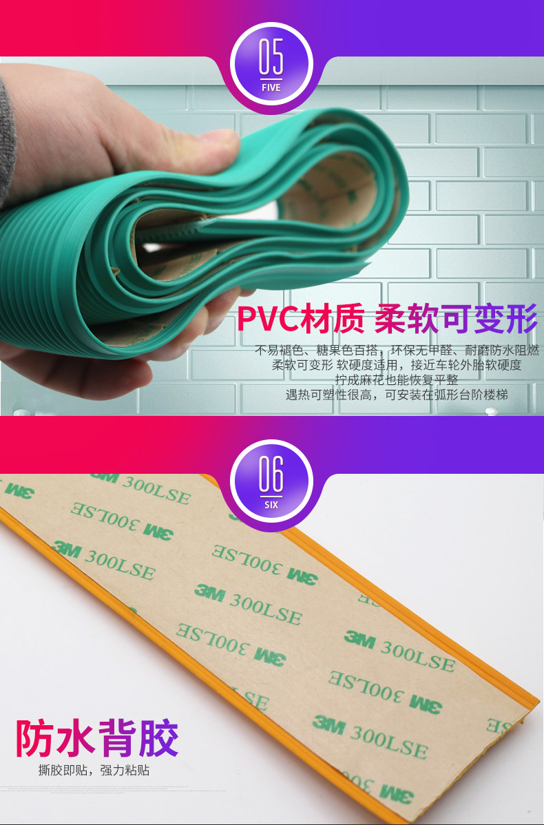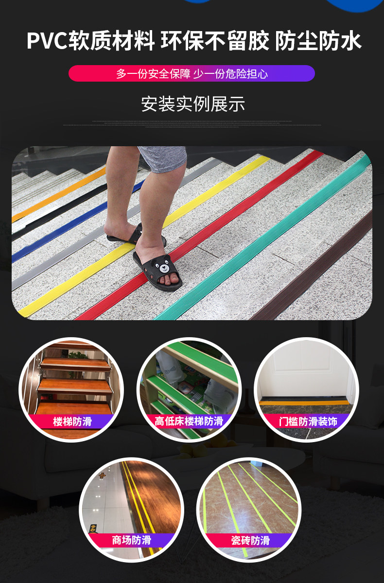 Нескользящая самоклеющаяся резиновая подсветка пола подходит для лестницы из ПВХ