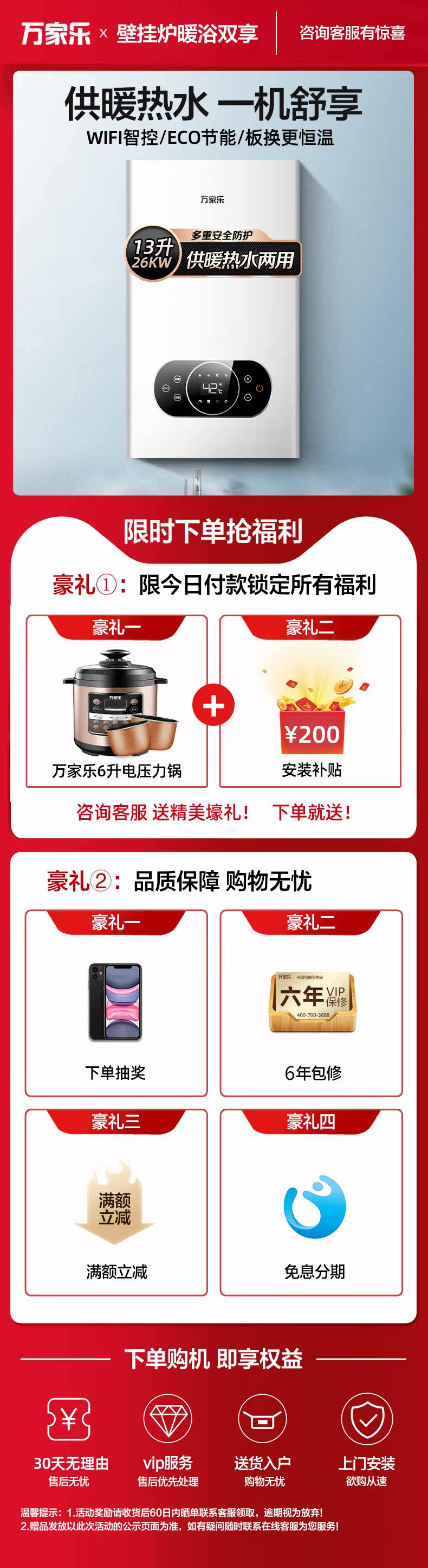 Wanjiale Swand Minted Cower 20/26 кВт природный газ Электрический газовый газовой газовой котел Уогревание ванны Двухцелевое напольное отопление горячая вода