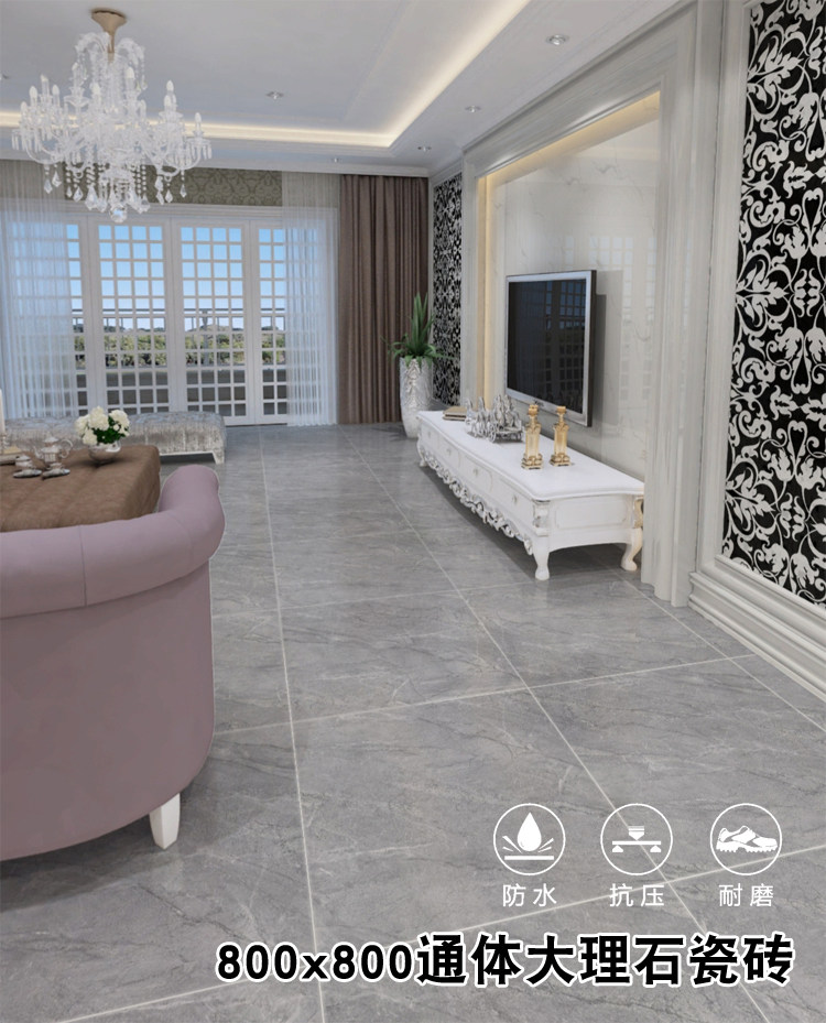 800x800 плитка современная простая серая гостиная спальня Двухнологичная полная фарфоровая имитация Мраморная анти -скользящая и износ