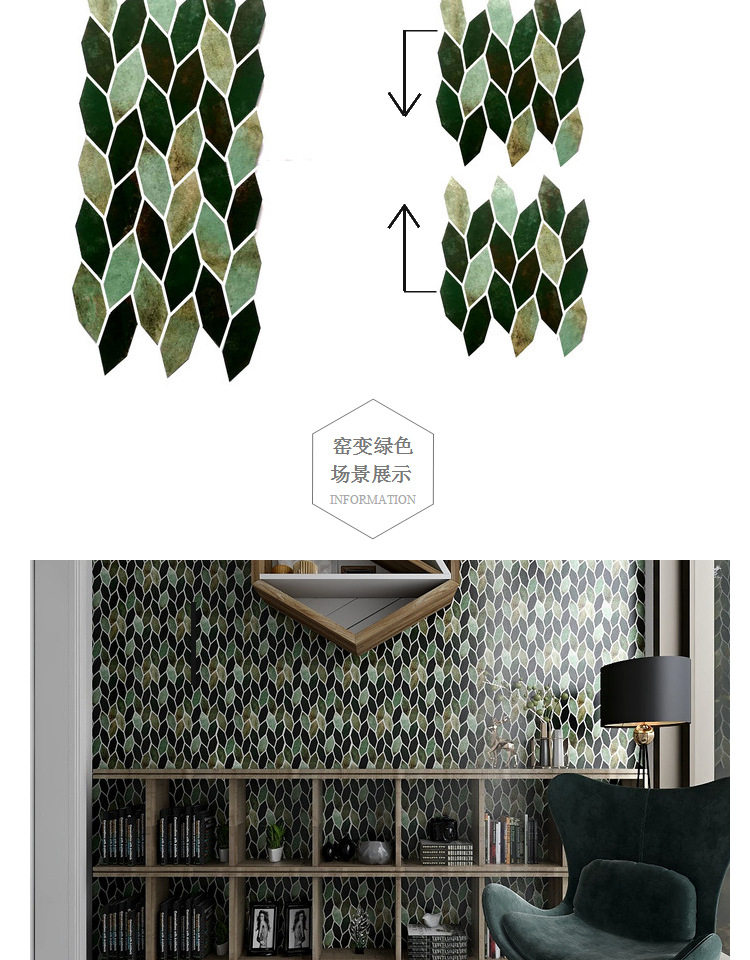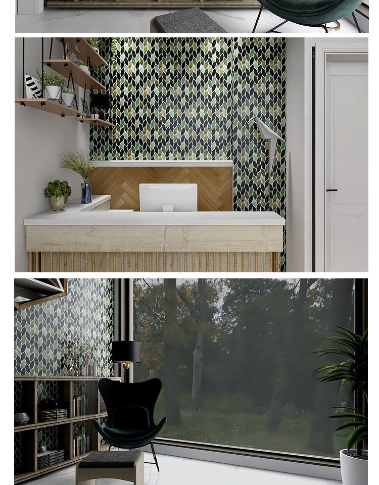 Скандинавский свет, роскошный стиль, темно-зеленые листья, фон особой формы, мозаика, ТВ, входная настенная плитка, украшение для отеля B & B