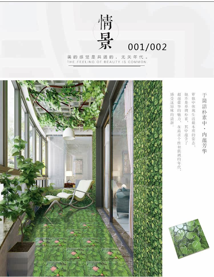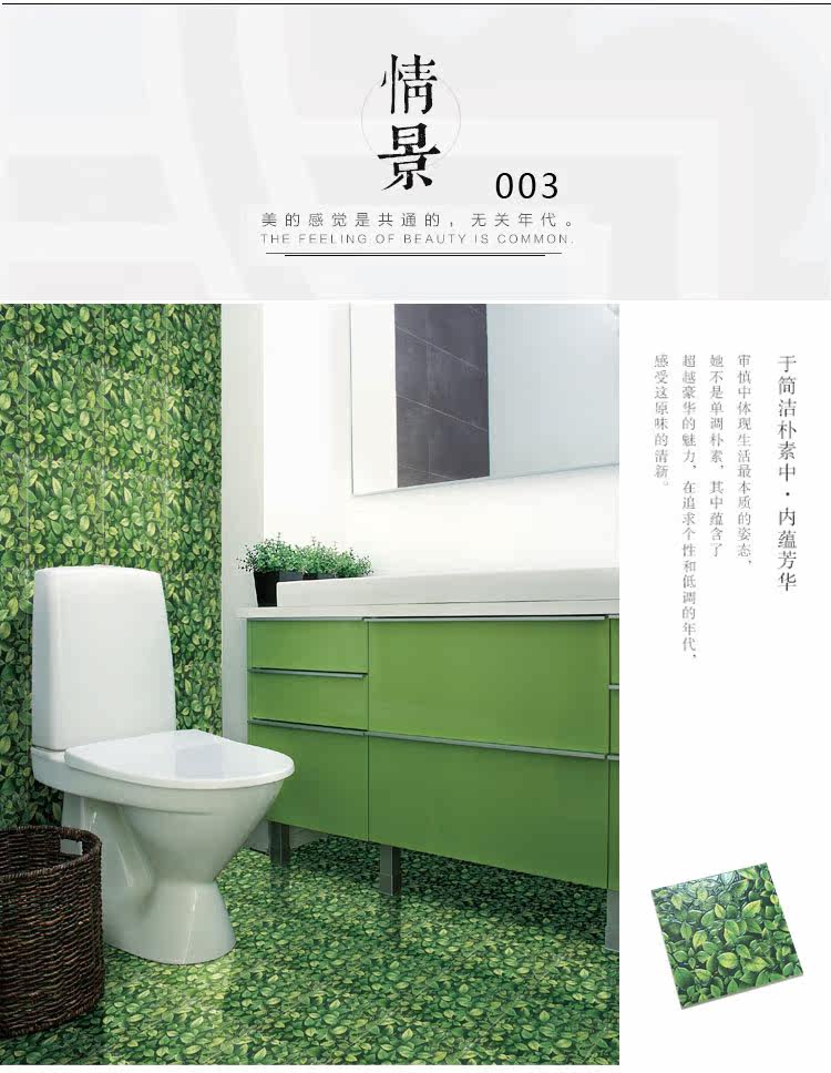 Зеленая защита окружающей среды Свежая и свежие лотосные туалет сельский цветочный кирпич 300x 300 туалетные плитки против скольжения
