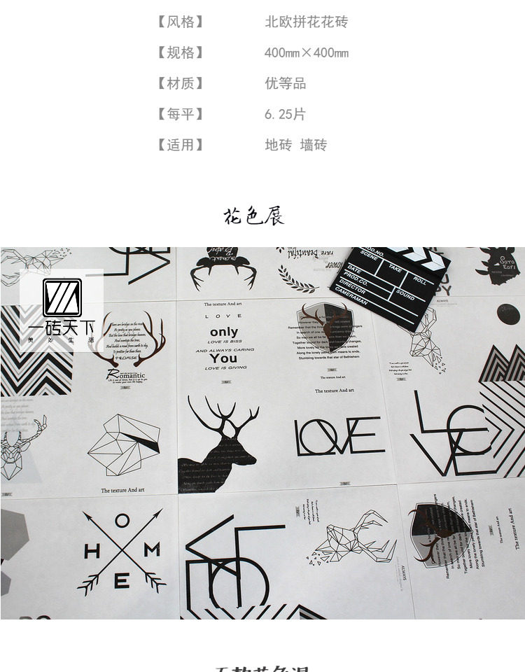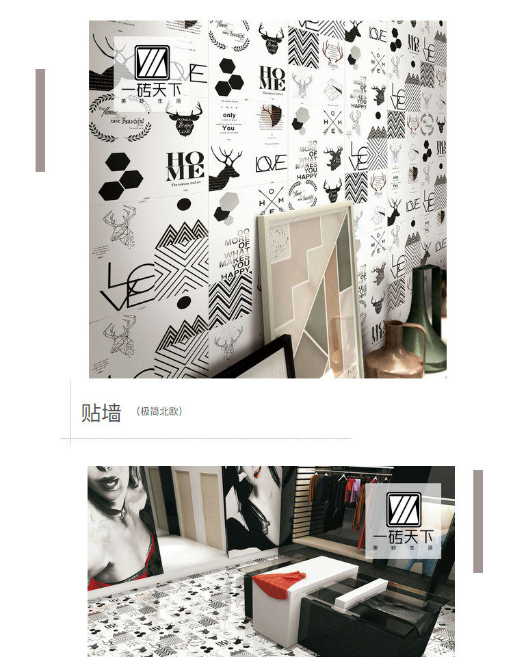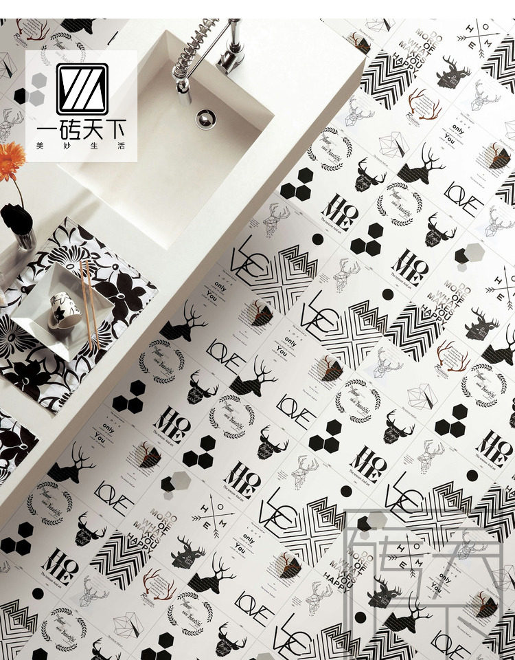 Nordic Art Tiles 400 × 400 Индивидуальная смешанная черно -белая простая плитка ресторан торговые центры для торгового центра кухня и настенные плитки для ванной комнаты