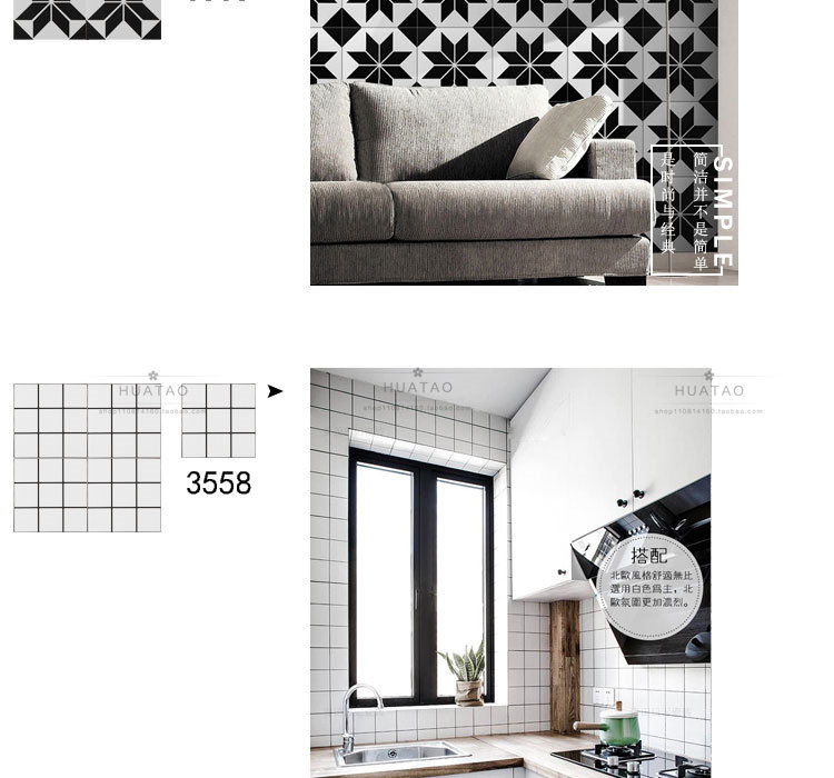 Нордическая черно -белая плитка кухня минималистская плитка на этаже туалетная туалетная плитка балкона балкона настенная плитка маленькая плитка 300x300