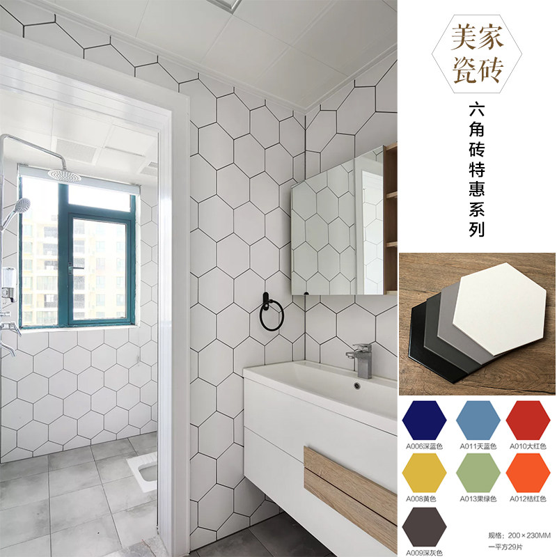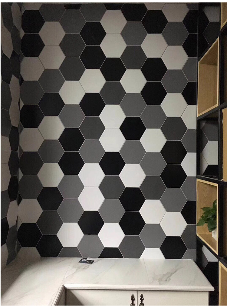 Продвижение плитки Meijia, шестиугольная плитка, современный минималистский стиль, ванная комната, скандинавская шестиугольная однотонная черно-белая, серая, джазовая, белая