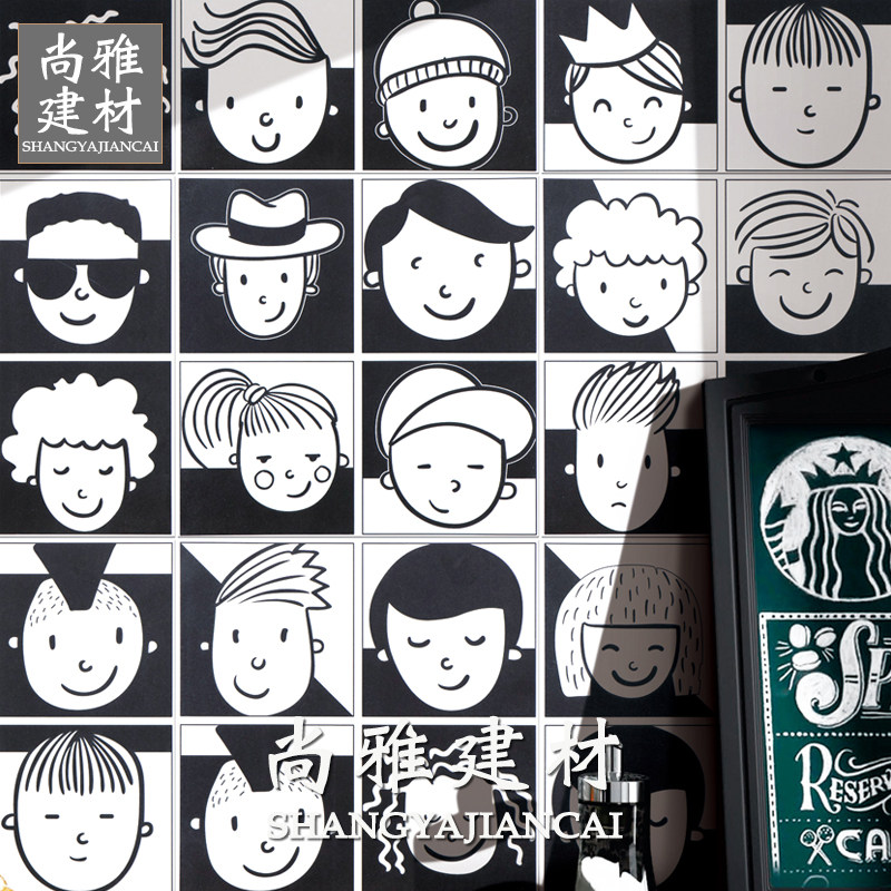 Черно -белая плитка 300 туалетная детская комната стена кирпич -кирпич -кусочка парикмахерская комикс аватарная плитка LH3007