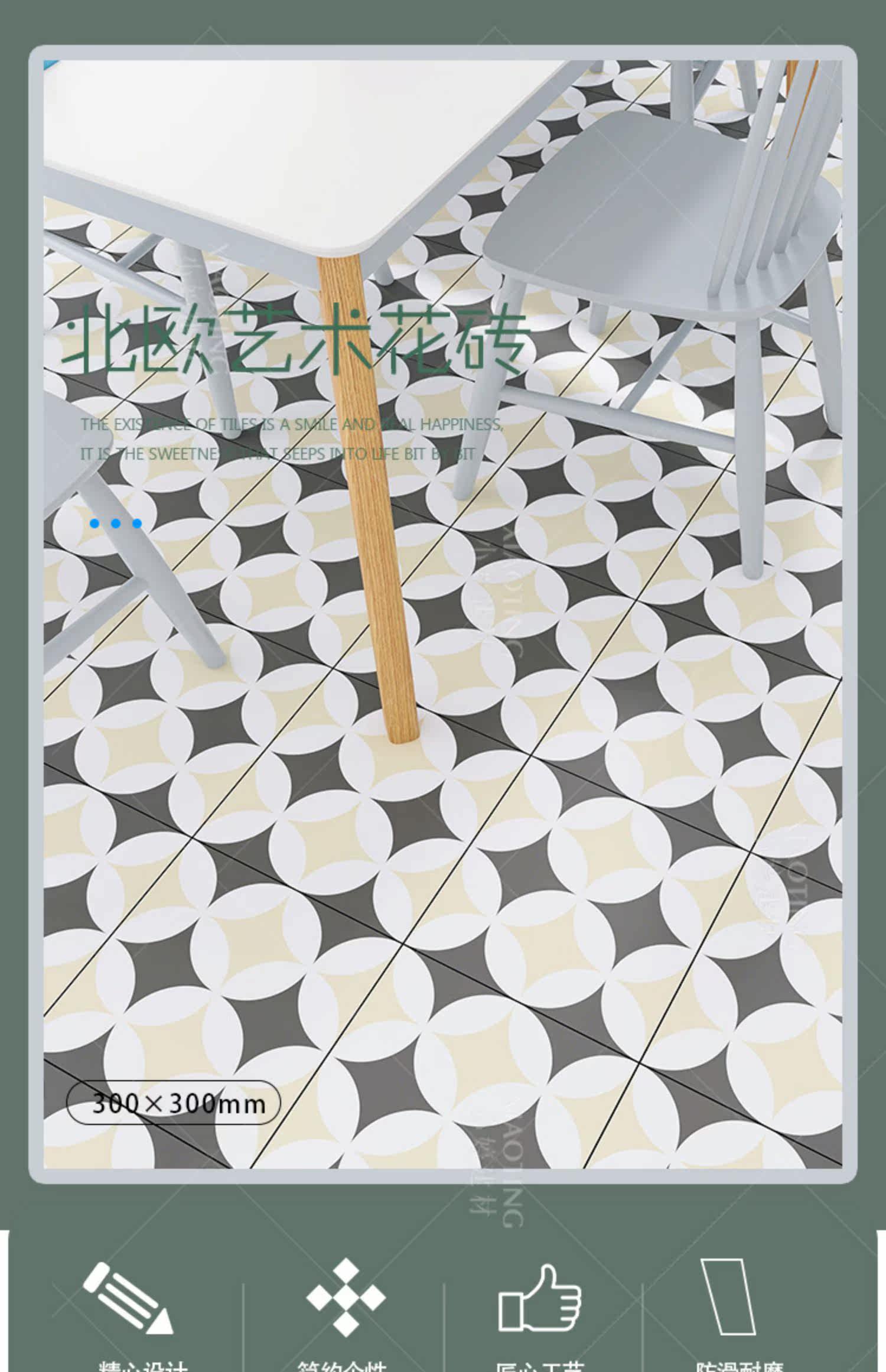 Nordic Ins Retro Retro маленькая плитка ванная комната кухня анти -скользящая плитка 300x300 балкон -цветочная пленка для ванной комнаты для ванной комнаты плитка