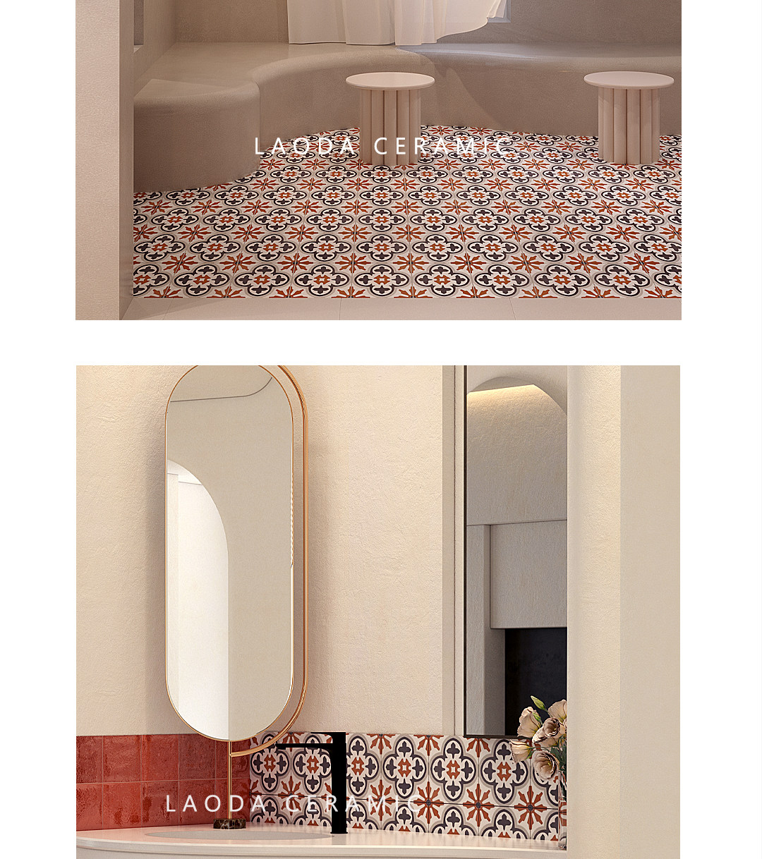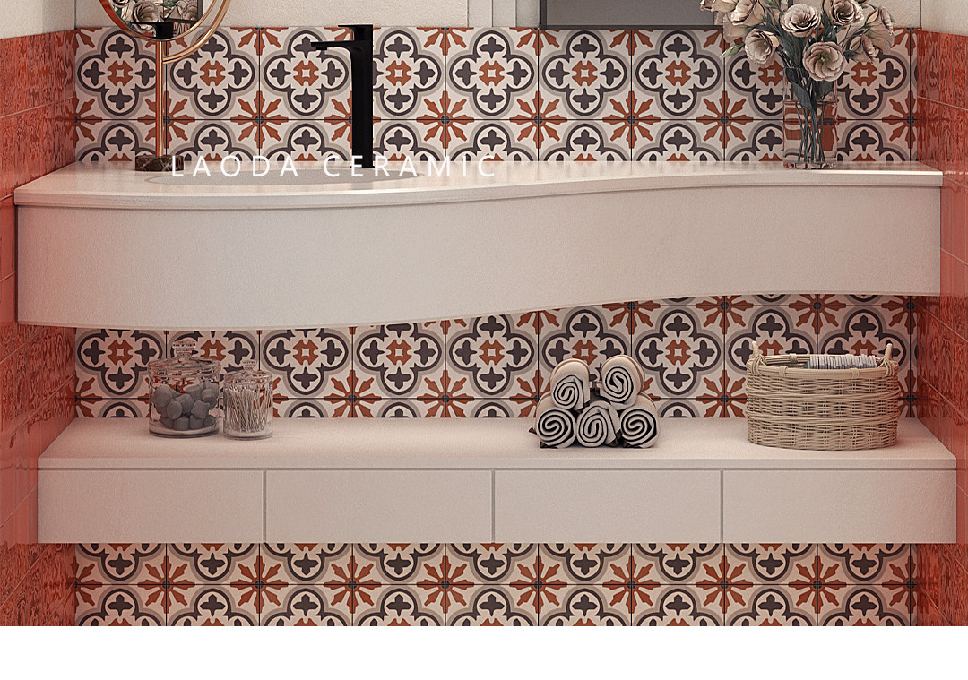 Американская ретро -кухня маленькая плитка плитка плитка марокканский двор цветочный фильм ресторан балкон ванная комната напольная плитка