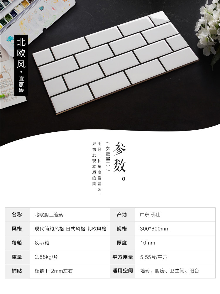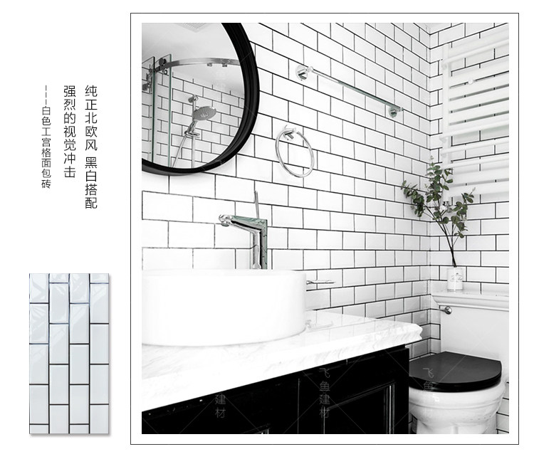 Северная плитка 300x600 кухня черно -белая сеть кирпичная хлеб кирпич балконы туалет маленький белый кирпичный туалет