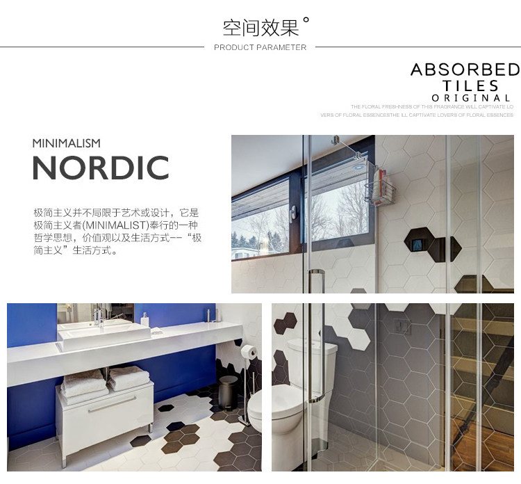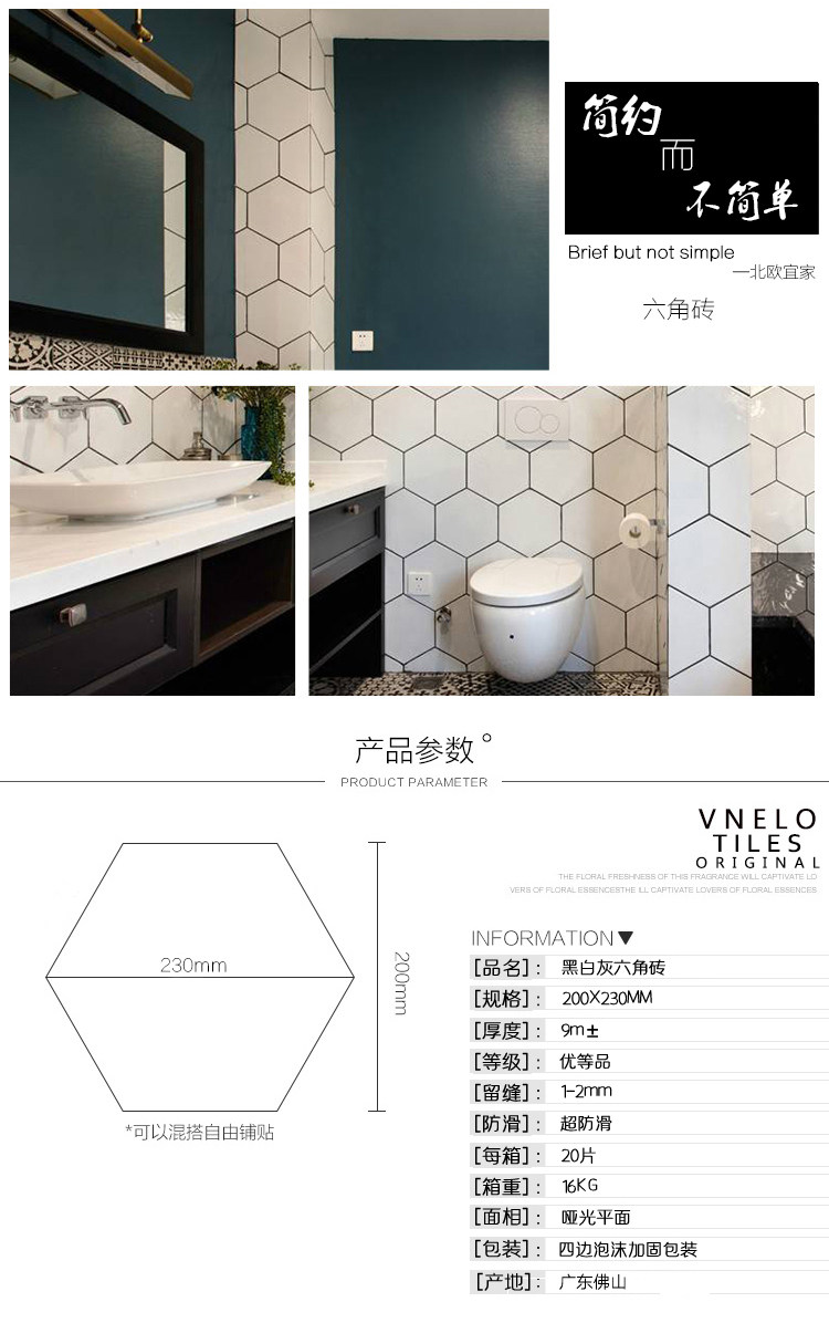 Северная черно -белая серая шестиугольная кирпичная шестиугольная ванная комната кухонная стена настенная плит