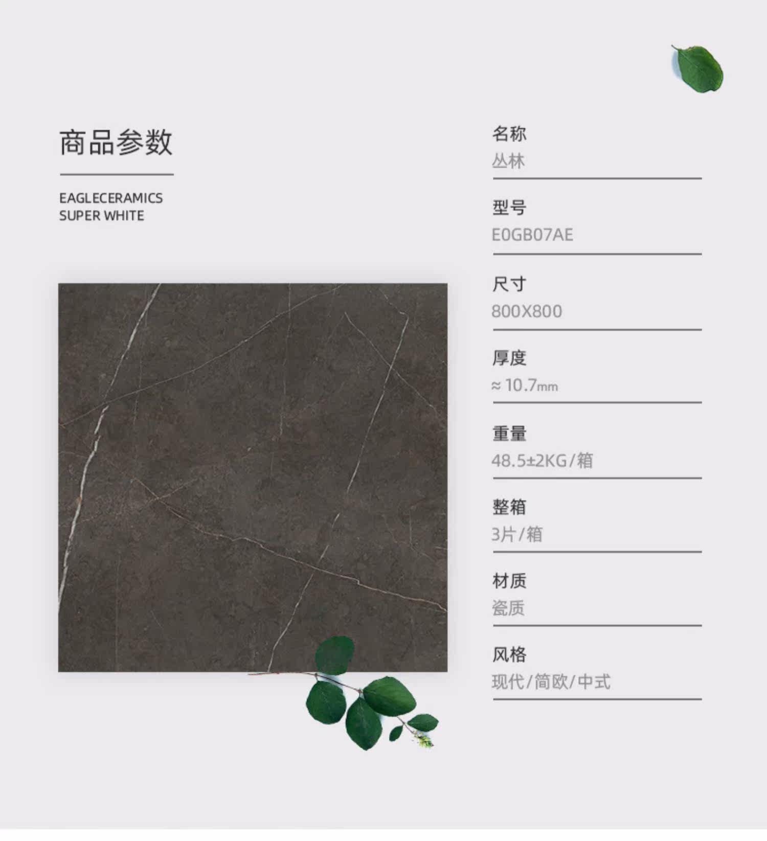Eagle Brand Plaze Full Glaze Anti -Slifing Wall плитка черный коричневый цвет 800 Простые современные гостиные плитка джунгли джунгли до 7 дней