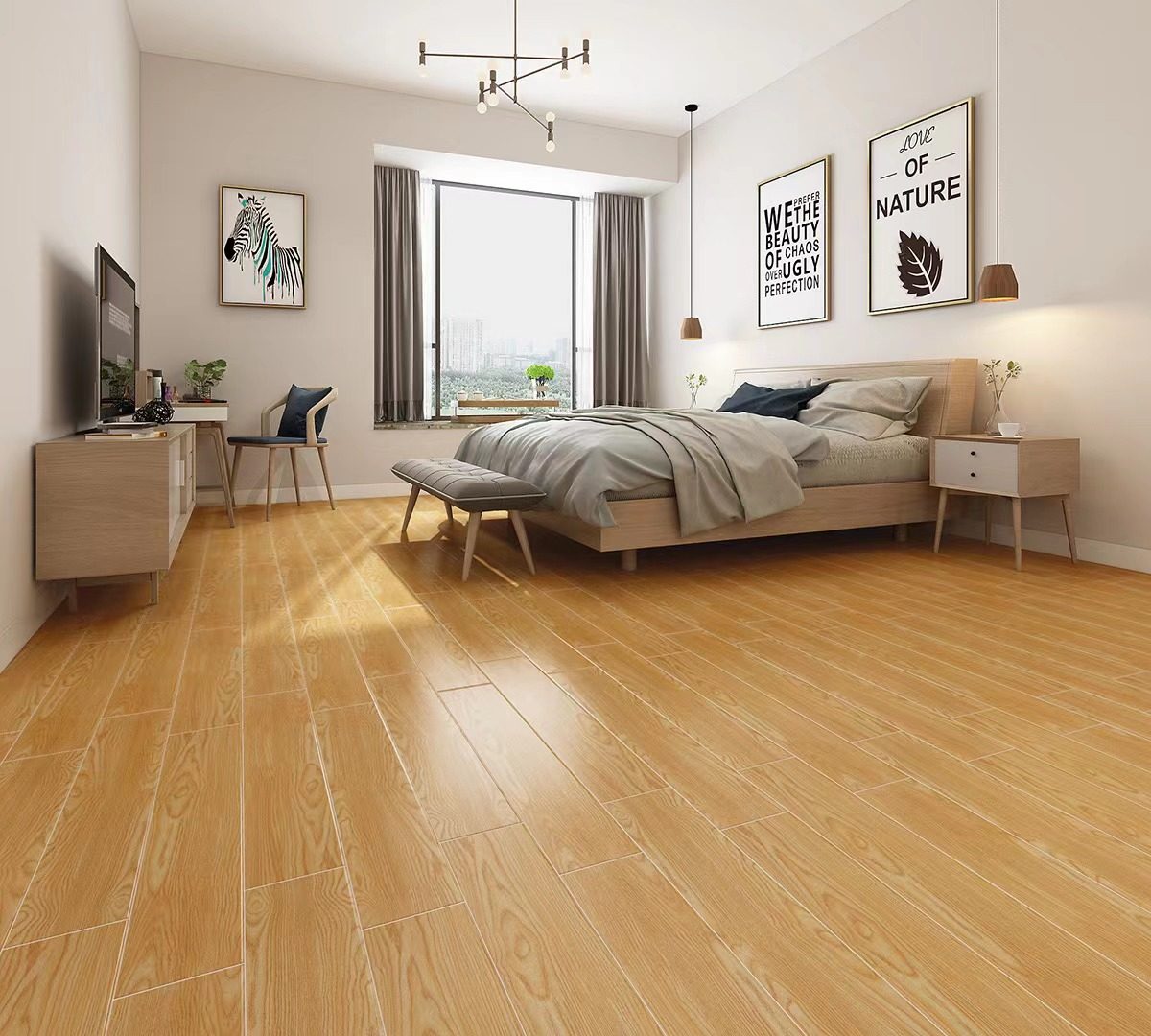 Имитация деревянной плитки 150x800 Простая гостиная спальня спальня без стекла и устойчивой кнопкой плитки и деревянные полосы и деревянные полосы