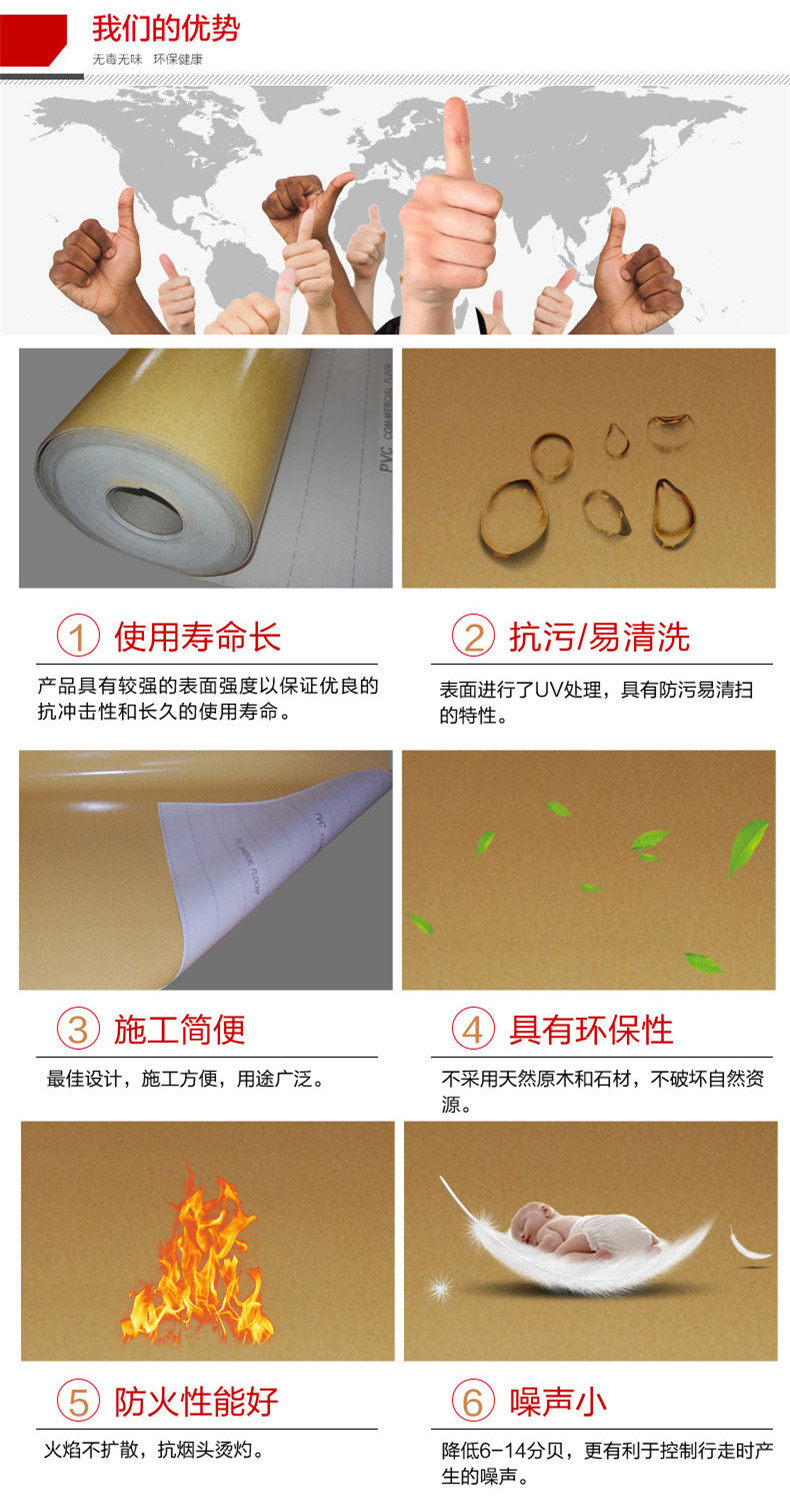 1. Зеленый и защита окружающей среды. &Nbsp; 2. Ультра -светлый ультра -тщательный   3, супер сильная износостойкость    6. Огненная пожарная отсталость   8, Поглощение звука и профилактика шума   9, антибактериальная производительность  10. Маленькие швы и бесшовные сварки     14, коррозия кислоты и щелочи   16. Легкое обслуживание  17, защита окружающей среды возобновляемые возобновляемые