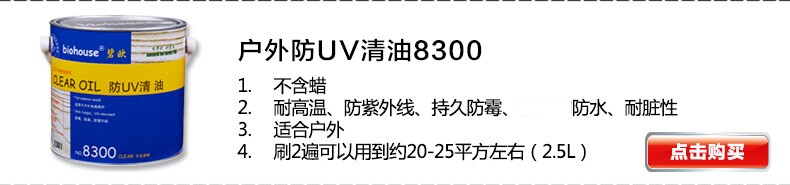 | Bio 8300 Anti -UV Clear Oil -Transbrent | Открытая деревянная мебель мебель деревянный дом беседка | 0.75L | 2.5L | 20L |