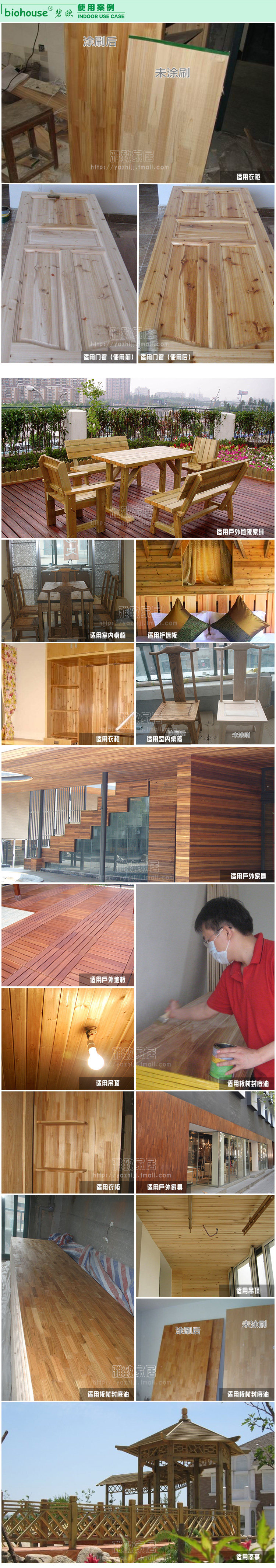 1Используется в качестве разнообразной защиты поверхности древесины, водонепроницаемой и грязной, отражая естественный эффект текстуры древесины.