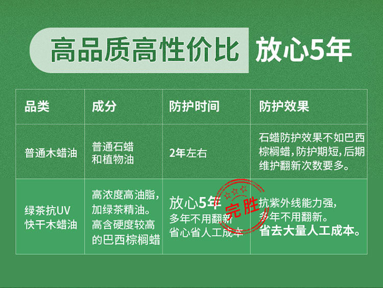 Чери зеленый чай древесина масла с твердым деревом на открытом воздухе экологически экологически чистое анти -коррозионное пластин