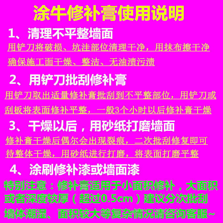 Tu niu белая настенная паста настенная толпа Crowth Crash Crash Skin Кожа Ремонт замазанный шпак