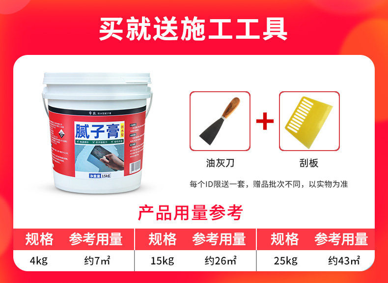 | Цвет: | 4 кг [влажная -надежная замазка] Послание инструмента (около 6 квадратных метров), 8 кг [влажная -надежная замазка] Послание инструмента (около 12 квадратных метров), 15 кг [влажная -надежная замазка] для отправки инструмента (около 20 квадратных метров), 25 кг [влажная -надежная замазка] Послание инструмента (около 36 квадратных метров) |