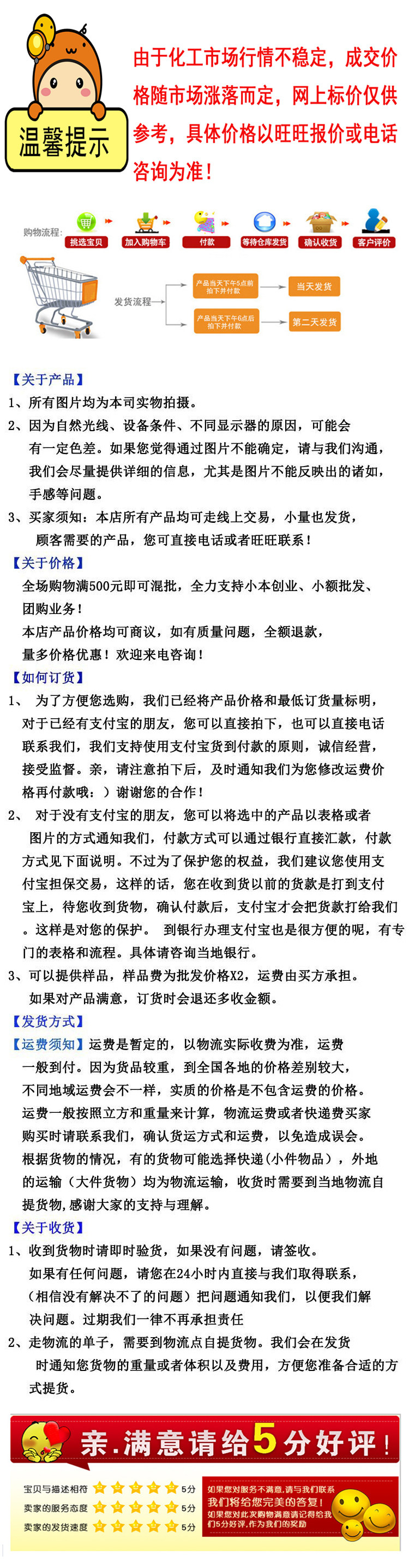 Добрые советы:Отправить обычную логистическую самооценку.Не доставляйте дверь, идите в округ!ПересечениеСиньцзян, Тибет, Гансу, Внутренняя Монголия, Цинхай и другие отдаленные районы не являются бесплатными!Пересечение Если вам действительно нужен клиент, пожалуйста, свяжитесь с обслуживанием клиентов, чтобы изменить груз, составить цену, спасибо!Большой контактный обслуживание клиентов, чтобы договориться о сделке![]()