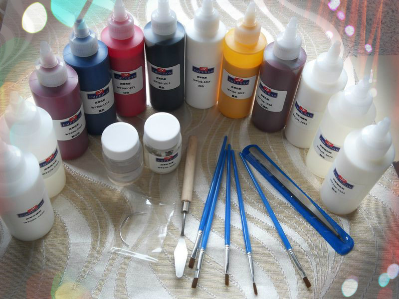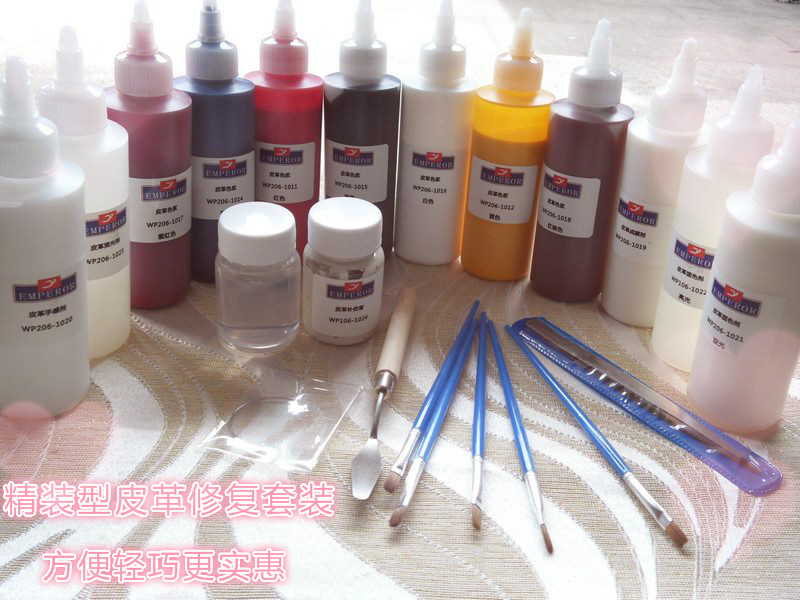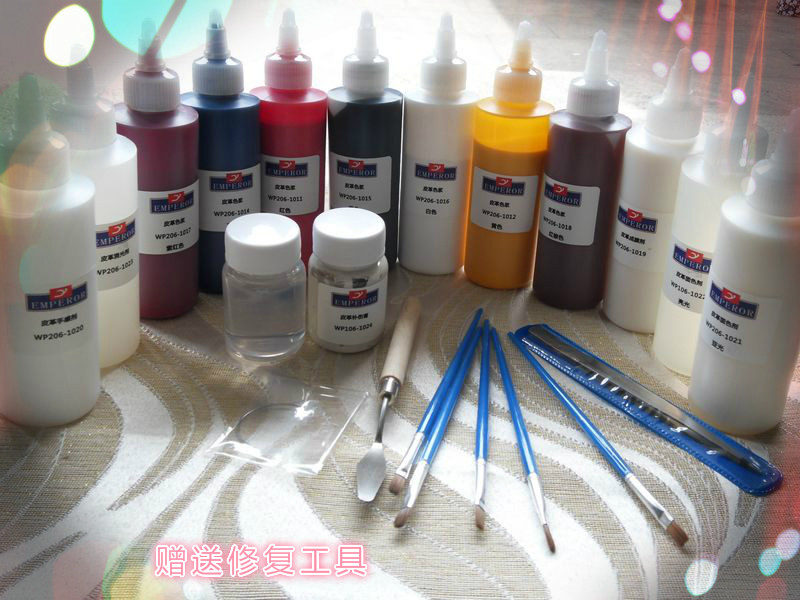 Кожаная цветовая суспений: красно -желтый черный белый синий фиолетовый фиолетовый фиолетовый красный коричневый коричневый всего 7 цветов каждая бутылка (150 грамм за бутылку)