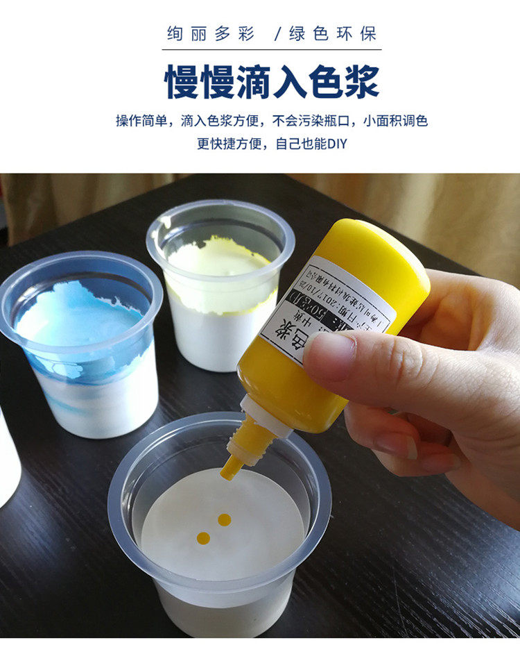3. Цветные пасты можно использовать для смешивания цветов глянцевых, матовых однотонных красок, базовых красок и других продуктов. Они обладают характеристиками яркого и чистого цвета, сильной укрывистостью, отличной устойчивостью к атмосферным воздействиям, блеском и сохранением цвета.