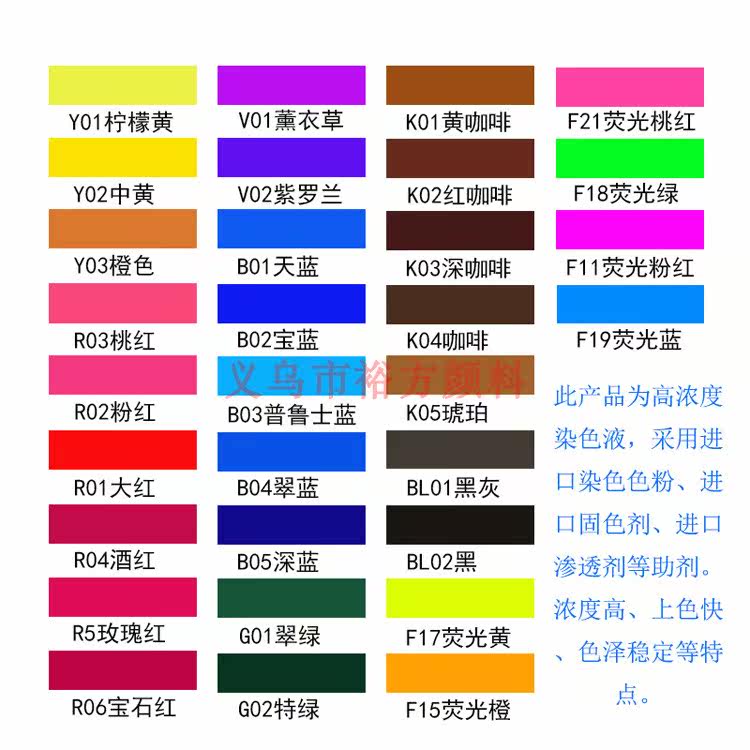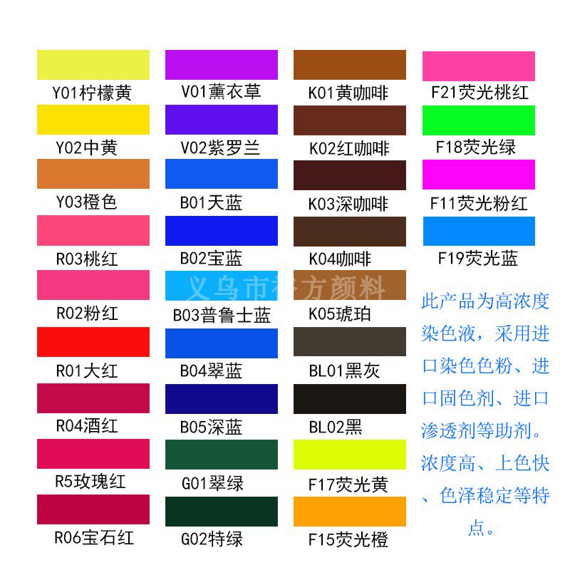 | Цвет: | Y01 лимонный желтый, Y02 Zhonghuang, Y03 Orange, R01 Dahong, R02 Pink, R04 Wine Red, R05 Rose Red, V01 Лаванда, V02 Вайолет, B01 небо синий, B02 Баолан, B04 CUILAN, B05 Deep Blue, G01 Зеленый зеленый, G02 Special Green, K01 Желтый кофе, K02 Красный кофе, K03 глубокий кофе, BL01 Black Grey, BL02 Царь Хей, F17 флуоресцентный желтый, F15 флуоресцентный апельсин, F18 флуоресцентный зеленый, F21 флуоресцентный персиковый красный |