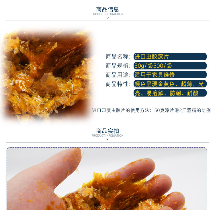 Imported Indian shellac paint flakes, transparent shellac flakes, furniture repair materials, Snickers tablets, foam, water and alcohol coloring liquid