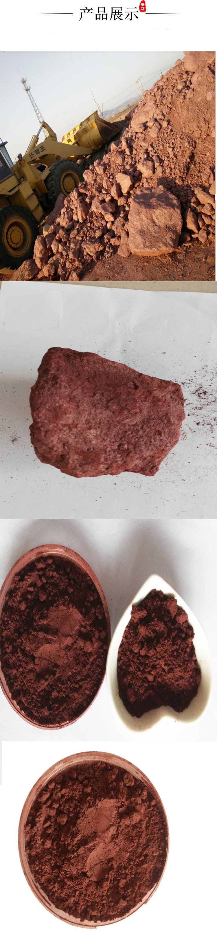 1. Его красно -коричневый порошок -это пигмент с низким классом.Железный оксид красный, Используется в таких отраслях, как краска, чернила, резина
