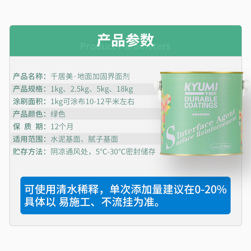 千居美 Грунтовый связующий агент для армирования цементных полов внутри и снаружи помещений, проникновения в песок и нанесения герметизирующего и отвердителя.