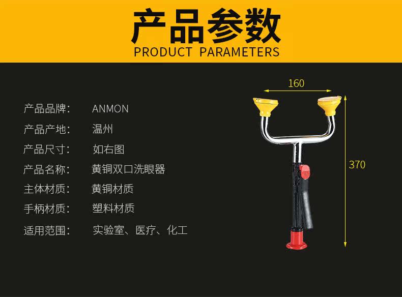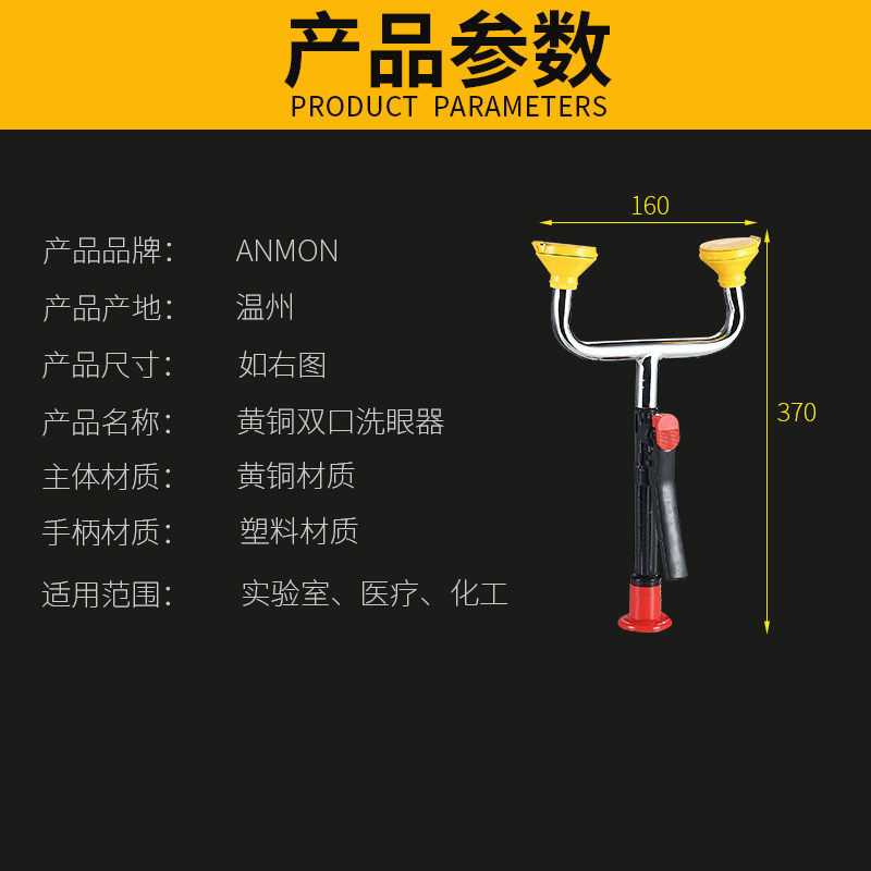 Anmon Полный медный спрей -пластиковый пластик двойной порт для промывки глаз. Инспекционная заводская таблица -тип мобильный спрей лабораторный лаборатория для мытья глаз