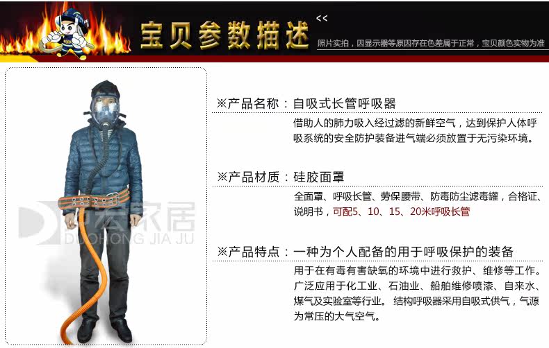 Пожарной популярный пентауэй дикий отравление пыли пыли, эраидная трубка маска 10 м -поглощение длинных трубки дыхание