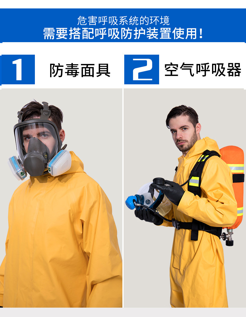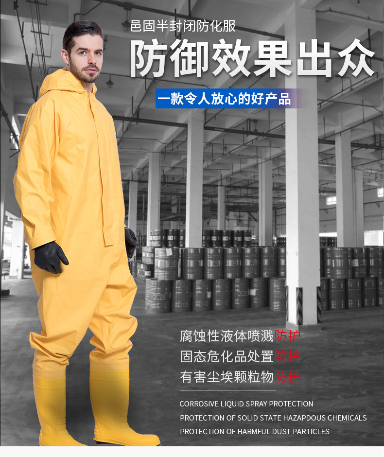 Полу -инвертированная легкая анти -химическая служба B -Уровень Двухерновой кислоты и щелочной резистентный тел анти -вирусный аммиачный защитная одежда
